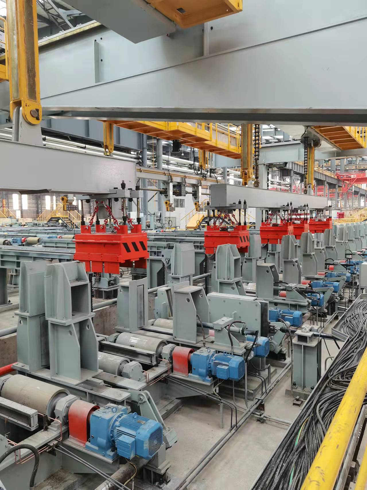 根據現場工況,此次設計的型材,鋼軌自動化生產線用電永磁鐵,采用5臺聯吊,吊運6~12米長型材,鋼軌用。