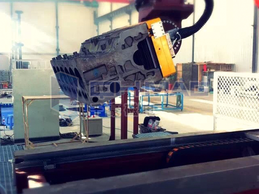 機器人電永磁吸盤吸附發動機缸體搬運|千豪磁電